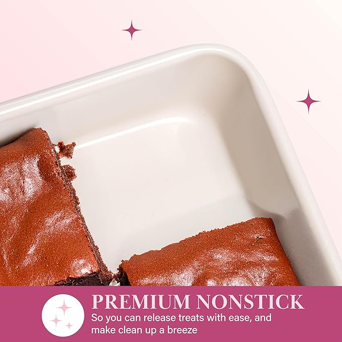 • FASHION MEETS FUNCTION: The versatile 9" square cake pan will quickly become your go-to for cakes, brownies and more. The two-tone pink and cream instantly upgrades your kitchen!