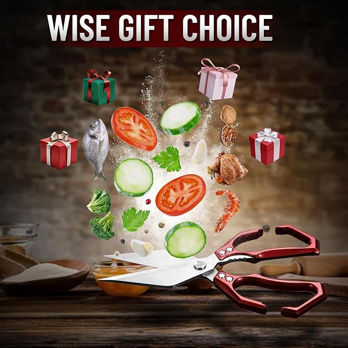 • A Thoughtful Gift: Presented in an elegant gift box adorned with intricate patterns, these heavy duty kitchen shears are a considerate gift for the most amazing man in your life. With their stylish packaging and practical utility, they make an unforgettable culinary present.