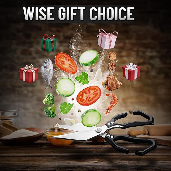 • Heavy-Duty Performance: Equipped with a robust construction and reinforced dual rivets, these kitchen meat scissors excel at tough kitchen tasks, including cutting through chicken bones. Their high-strength design ensures long-lasting performance while minimizing effort.