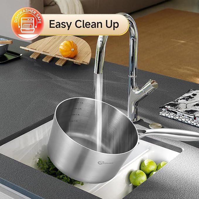 LOLYKITCH Tri-ply Stainless Steel 3 QT Saucepan with Lid and Steamer,Sauce Pot,Induction Cooking Pot,Dishwasher and Oven Safe.
