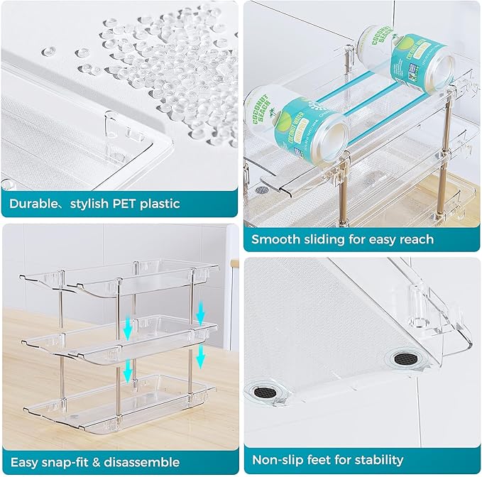 • Space-Saving Design: Standing at just 4.1 inches high, each shelf accommodates 4 standard cans or 5 smaller soup or beverage cans, keeping your can holders for pantry slim and maximizing your storage space