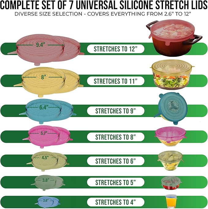 • Cheerful & Practical: Add a splash of color and joy to your kitchen with our cheerful silicone stretch lids for a fun, organized food storage solution.