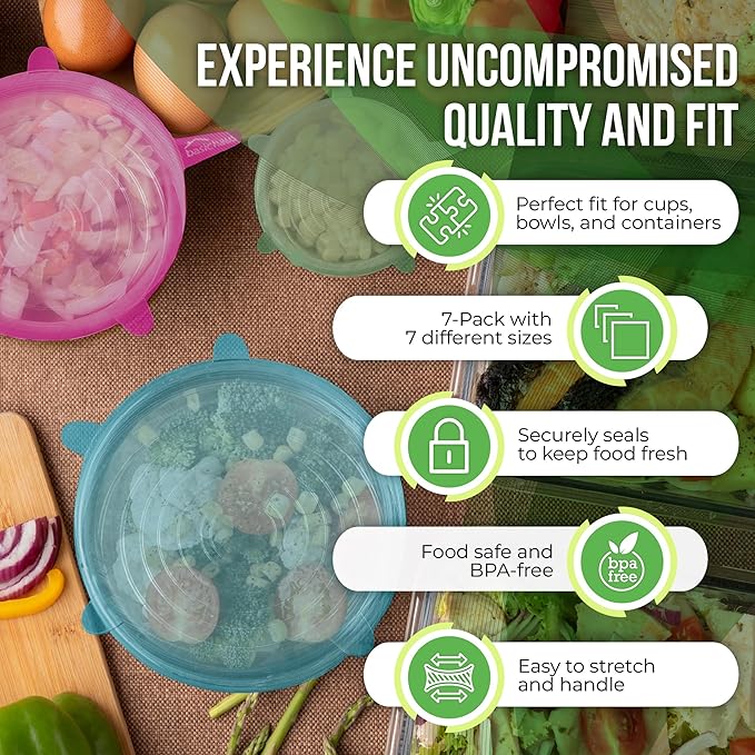 • Lasting & Economical: Replace plastic wraps with our durable silicone lids for a reusable, cost-saving solution to kitchen waste.