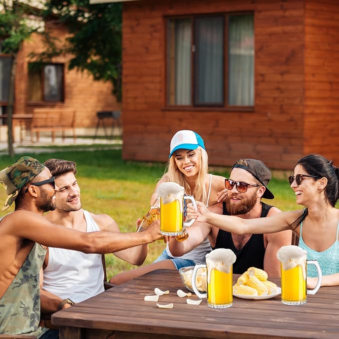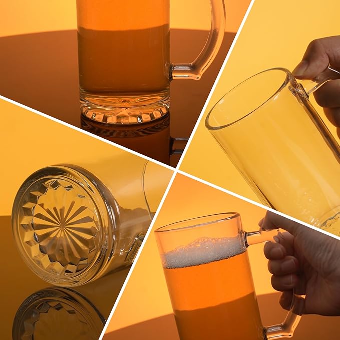 17 OZ Beer Stein Mugs, German Clear Large Tall Beer Glasses With Handle for Men, Set of 2