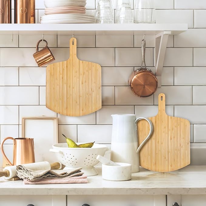• Material: Sturdy durable and lightweight,the pizza peel made of premium-quality bamboo,even texture ensures our peels are less prone to cracking.