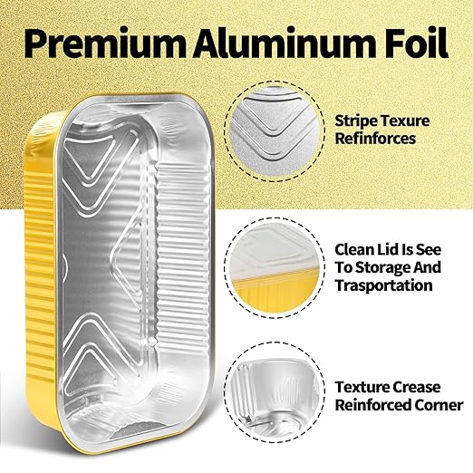 • The expensive gold coating used on the outside of these gold foil containers can reflect heat well, improve cooking efficiency, and ensure that food is perfectly cooked and evenly heated. The gold hue can also add a touch of sophistication to your table setting.