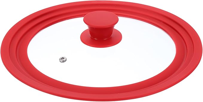 Uxcell 1Pcs Universal Lid for Pot Fit 8.5, 9.5, 10 Inch Diameter Cookware, Replacement Pan Lid with Heat Resistant Silicone Rim, Steam Vent Pan Lid for Pots, Frying Pans, Skillets, Red