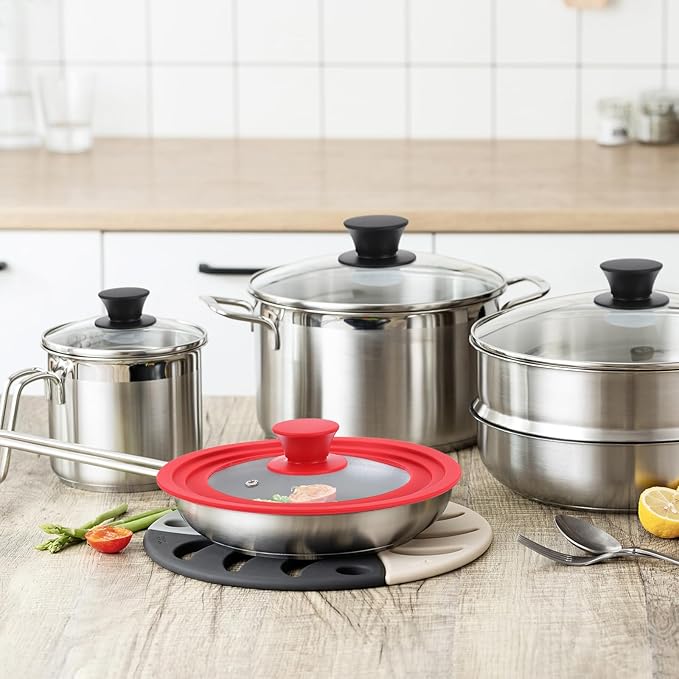 • [Clear Design]: The clear glass lid is very suitable for checking on your food while cooking. It lets you watch your food cook without opening the lid, giving you a better idea of cooking time. The lid's steam hole releases excess moisture to prevent spills.
