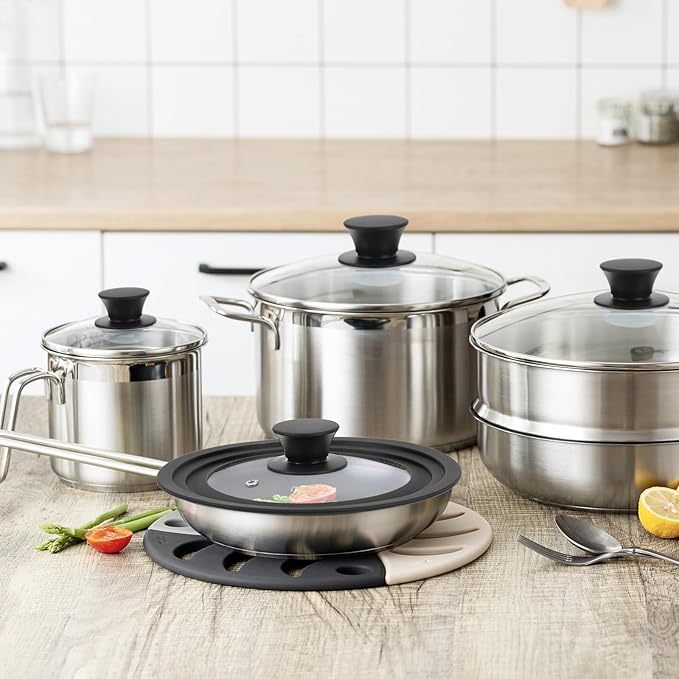 • [Clear Design]: The clear glass lid is very suitable for checking on your food while cooking. It lets you watch your food cook without opening the lid, giving you a better idea of cooking time. The lid's steam hole releases excess moisture to prevent spills.