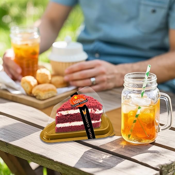 Cake Slice Container, 50 Pack Clear Plastic Cake Containers Cheesecake Container Pie Slice Box, Individual Pie Slice Box Disposable Cheesecake Containers For Pies Snack Dessert (Gold)