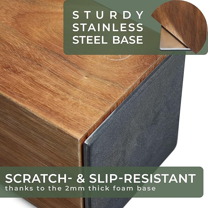 • Premium materials - High-quality acacia wood and stainless steel ensure maximum durability. The acacia wood provides a particularly stable and blade-friendly surface for your knives.