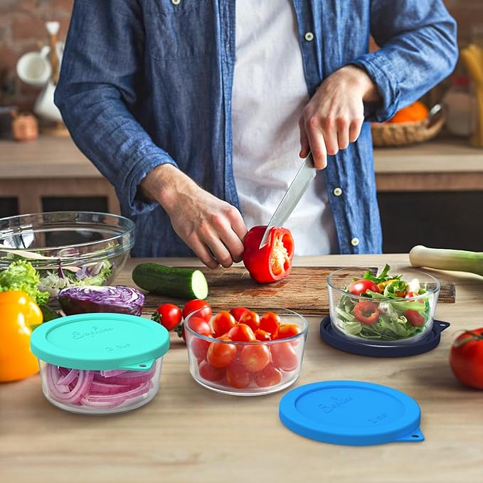 Sophico 2 Cup Round Silicone Storage Cover Lids Replacement for Pyrex 7200-PC and Anchor Hocking Glass Bowls (Container not Included) (MIX-6pack)