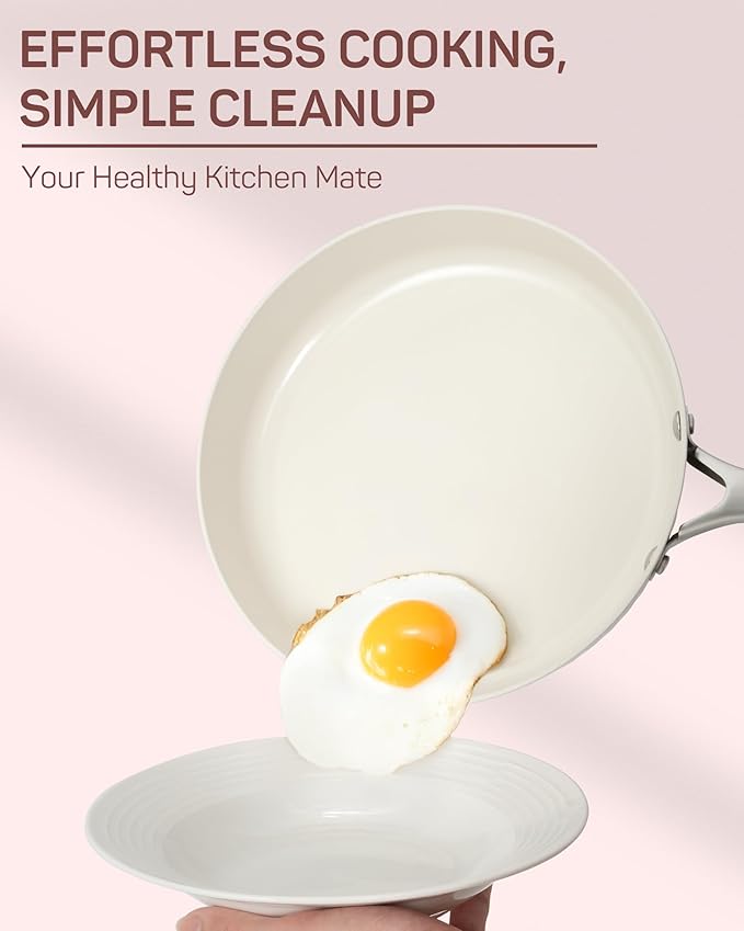 - ใ๐ก๐ฎ๐๐๐ฟ๐ฎ๐น ๐ก๐ผ๐ป-๐ฆ๐๐ถ๐ฐ๐ธ Ceramic Coating for ๐๐ฒ๐ฎ๐น๐๐ต๐ถ๐ฒ๐ฟ CookingใCiwete cookware set features a natural, non-stick ceramic coating free from harmful chemicals like PFOA and PTFE. Passed Healthy and Safety TรV SรD certification. Enjoy effortless cooking and cleaning while ensuring a healthier, more efficient and eco-friendly kitchen experience for you and your family.
