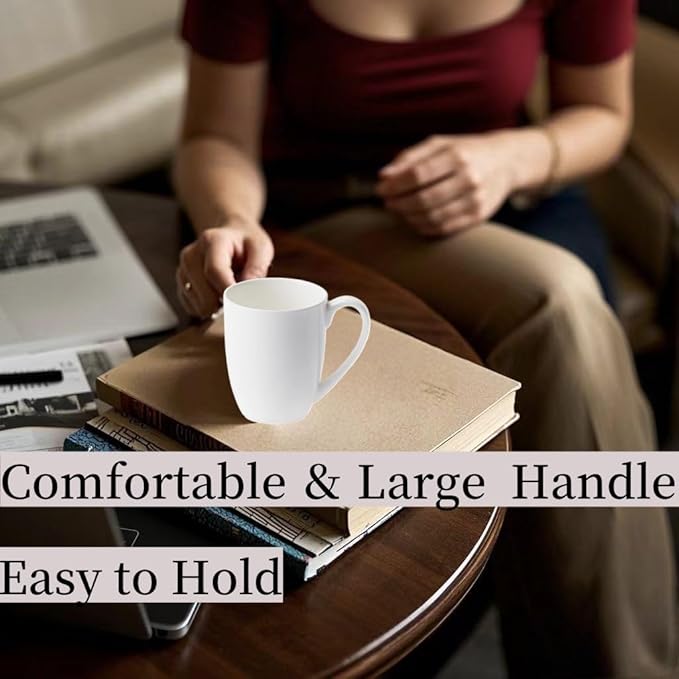 12 oz Fine Bone China Coffee Mugs Set of 6, Over 45% Bone Content White Mugs, Durable Porcelain Coffee Mugs Sets, White Ceramic Lightweight Tea Milk Cups, Microwave & Dishwasher Safe