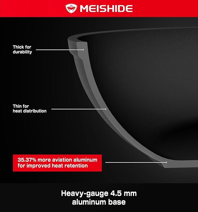 - Suitable for All Stoves: No More Cooktop Compatibility Issues - The fan-shaped high-magnetic aviation aluminium base heats 57.31% faster than regular pans (tested on gas, electric & induction cooktops). Oven & Dishwasher Safe: From stovetop to oven (up to 500°F), then toss in the dishwasher. Ideal for searing, baking, or reheating leftovers.