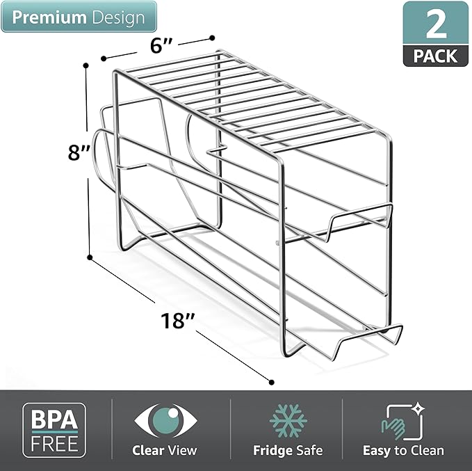 • Durable and Refined Design: Measuring approximately 18” L x 6” W x 8” H, this soda can holder for refrigerator is made from durable metal.