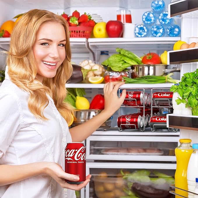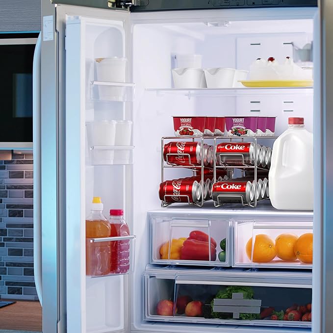 • Sorbus Fridge Can Dispenser (2 Pack, Silver): This soda can dispenser for refrigerator holds up to 12 standard 12 oz soda cans, making it easy to access and dispense your favorite beverages. Can rack features a convenient top shelf for additional storage. Organizer also works great for storing small food cans and other pantry items.