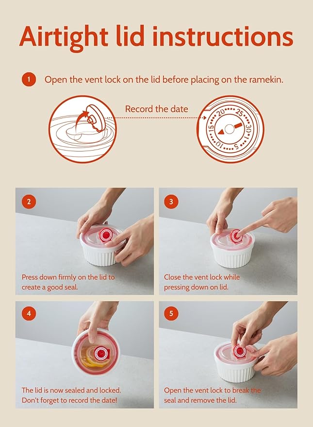 • KEEP DISHES FRESH LONGER: Each Sweese 8 oz Ramekin features a secure lid for extended freshness, complete with a date marker to monitor your culinary creations' shelf life. Ideal for storing and serving a variety of recipes!