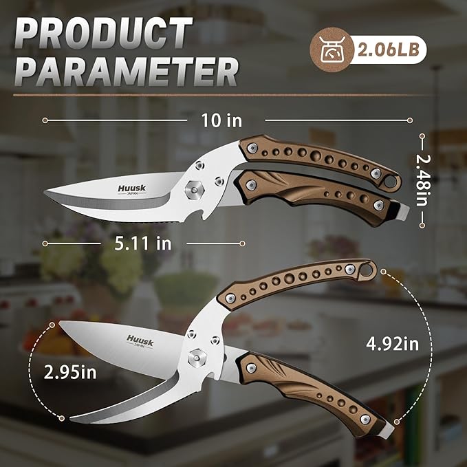 Huusk Poultry Shears Heavy Duty Kitchen Scissors All Purpose for Food Detachable Meat Cutting Scissor Ultra Sharp Cooking Shear for Turkey Chicken Bone Vegetable Bronze