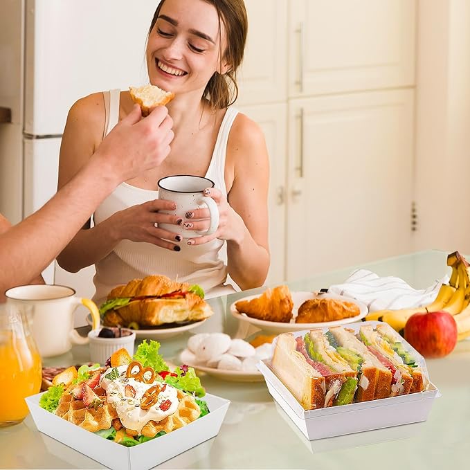 • Value Package: The package includes 50pcs 5 inches square paper charcuterie boxes with clear lids and 50 "Thank You" stickers enough quantity for your daily use, adding a special touch to your food presentation