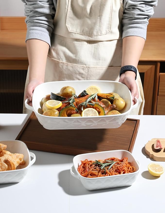 Sweejar Casserole Dishes for Oven, Baking Dish Set of 3,Ceramic Bakeware Set, Rectangular Baking Pan for Cooking,Kitchen,Banquet,12.2x9.2x2.5 Inches (White)