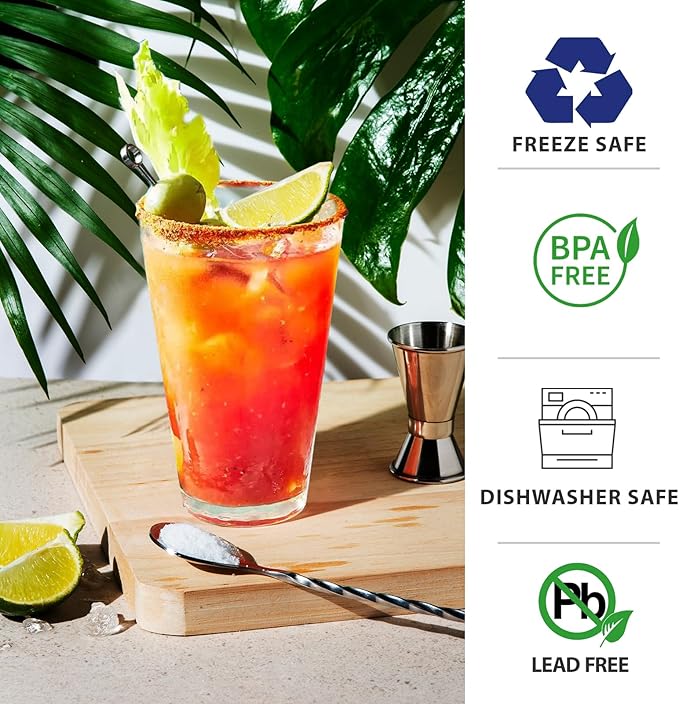 • FREEZE-SAFE PINT GLASSES -The water glasses is BPA-free,Lead-free, refrigerator-safe, drink a iced beer,coke,cocktail,mixed drinks and have a good time