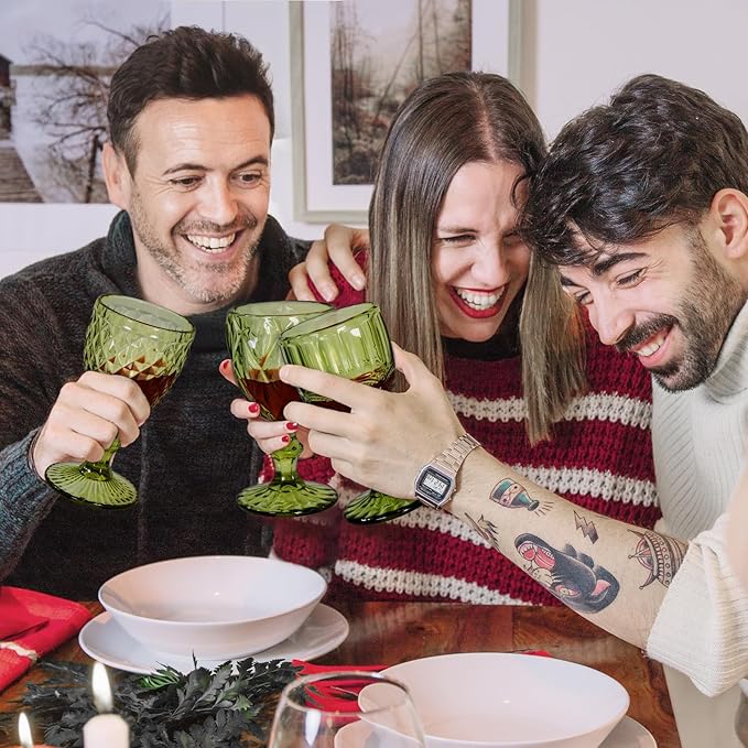 • Vibrant Colors: This vintage glass wine glass comes in three different embossed patterns, These vibrant colors add a touch of liveliness and visual appeal to any table setting, making them perfect for family gatherings, banquets, and wedding parties. The colorful glasses create a joyful and festive atmosphere.