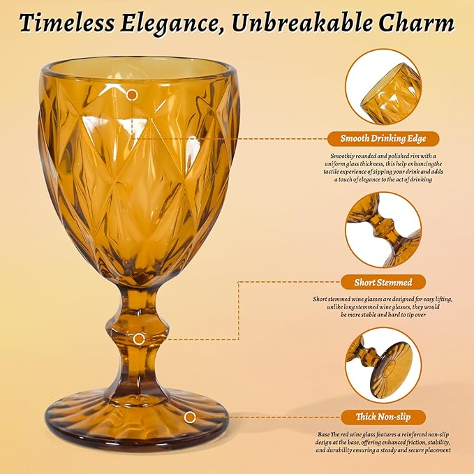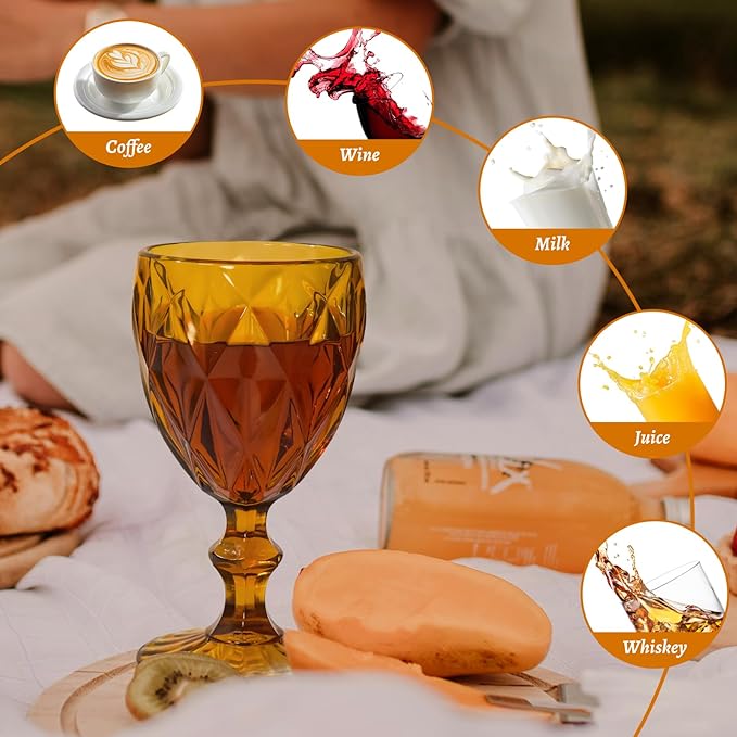• Versatile Usage: These vintage-style wine glasses are not limited to wine alone. They can be used for a variety of beverages such as juice, soda, iced tea, and water. This versatility makes them suitable for any occasion, whether it's a casual gathering or a formal celebration. You can use them for everyday use or reserve them for special events, making them a practical and versatile addition to your glassware collection.