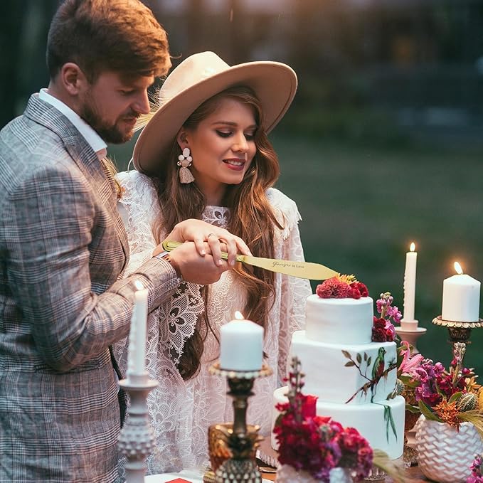 • [Designed for Special Moments]: The champagne flutes are perfectly weighted for a refined toasting experience, while the knife and server provide smooth, precise cake cutting. This set elevates any event with its stunning design.