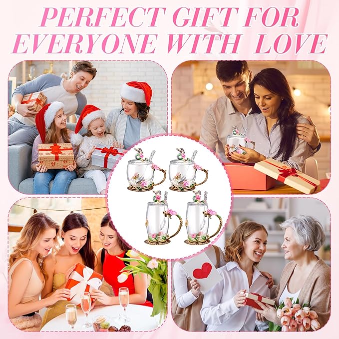 • Elegant Teacup Sets: you will get 4 sets of fancy tea cups with lids and spoons, the elegant design, nice combination and ample amount will satisfy your diverse use and gift giving needs