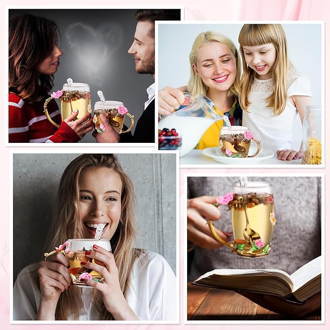 • Trustworthy Material: the flower glass cup is made of quality enamel glass and the spoon is made of stainless steel, safe, reliable and durable, not easy to be scratched, will serve you for years to come