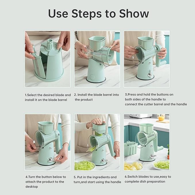• Easy to Use: Our cheese grater hand crank is designed for ease of use and cleaning. All components are simple to install and disassemble, allowing for quick cleaning under running water, keeping your kitchen clean at all times