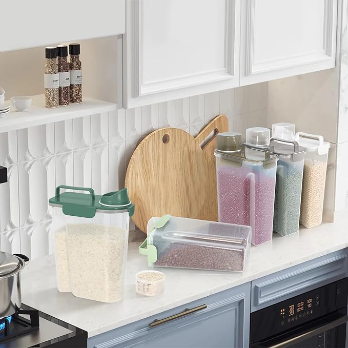 • CAPACITY : Our Pet dry food storage containers , cat food storage container combination capacity is 14 LBS, and can hold approximately 10-14 pounds of pet food and rice,Depends on the size of the food。It also works well with regular kitchen food,Such as rice,flour,cereal,beans,nuts,snacks or whatever you like。