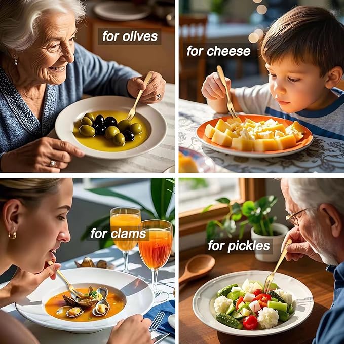 • Multi-function: These mini appetizer forks are perfect for small portions servings like fruits, cheese, vegetables, olives, shrimp, cherry tomatoes, mussels, crabs, and various appetizers.