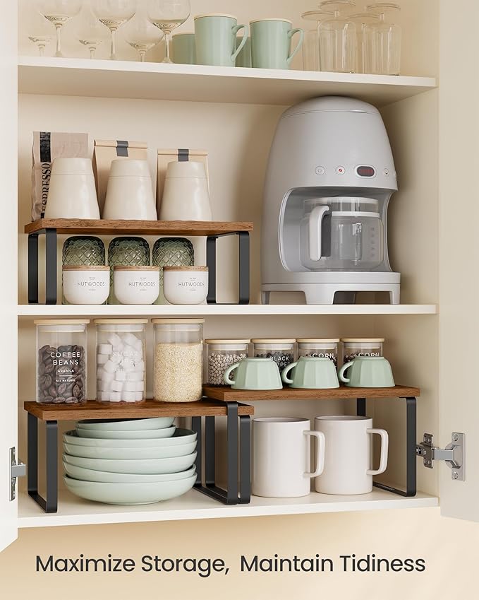 • 【MULTIPURPOSE USE】Not just for the kitchen! Use these kitchen counter shelves to elevate your dining table centerpiece in the restaurant, organize makeup on your bedroom desk, or store toiletries in the bathroom