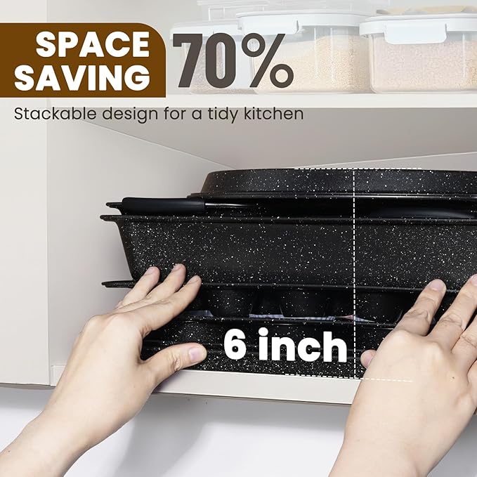 • 【TOXIC-FREE NONSTICK COATING】To promote a healthier baking experience, we use a premium nonstick coating free from PTFE, PFAS, PFOA, and other harmful chemicals, that ensures easy food release and hassle-free cleanup and won’t peel even with regular use and scratching
