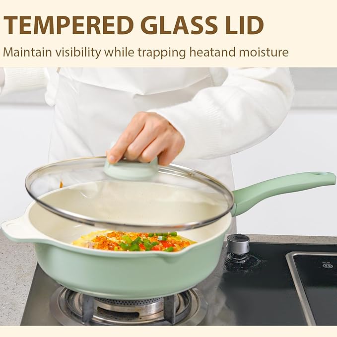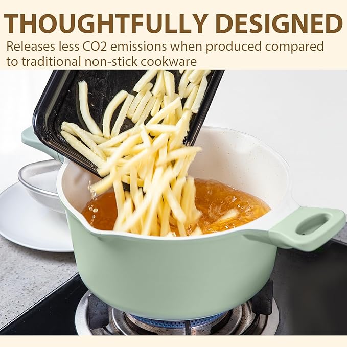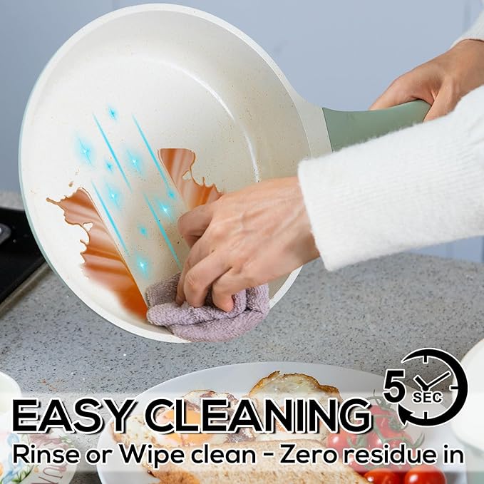 • Toxin-Free Healthy Cooking Set: When buying, choose sets explicitly labeled lead, PFOS, and PFOA-free—these harmful chemicals pose potential health risks. Thankfully, toxin-free granite cookware options exist. Choose Romswi healthier Non Toxic cookware set