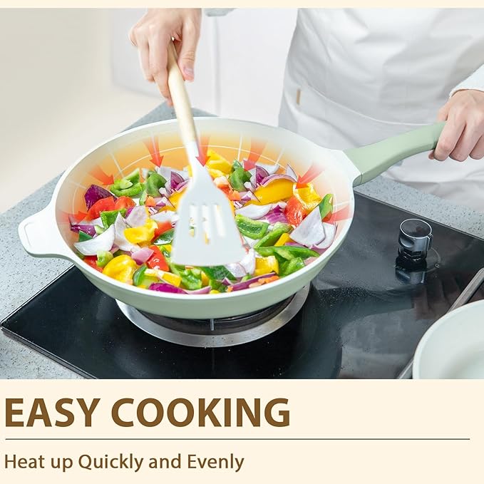Romswi 23pcs Pots and Pans Set Non Stick, Kitchen Cookware Set with Casserole, Frying & Saucepans, Oven Safe & Stovetop Agnostic Non Toxic Cookware(Gas, Electric & Induction) - Green