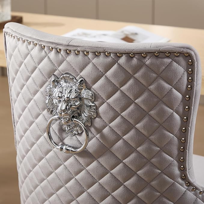 • Modern Barstools: The back of this bar chair is designed with a lion's head pull ring to make it easier to take out. The tufted back with buttons gives the stools more elegant appearance. The entire velvet barstool is decorated with nailhead surrounds to give the chair a more stylish look.