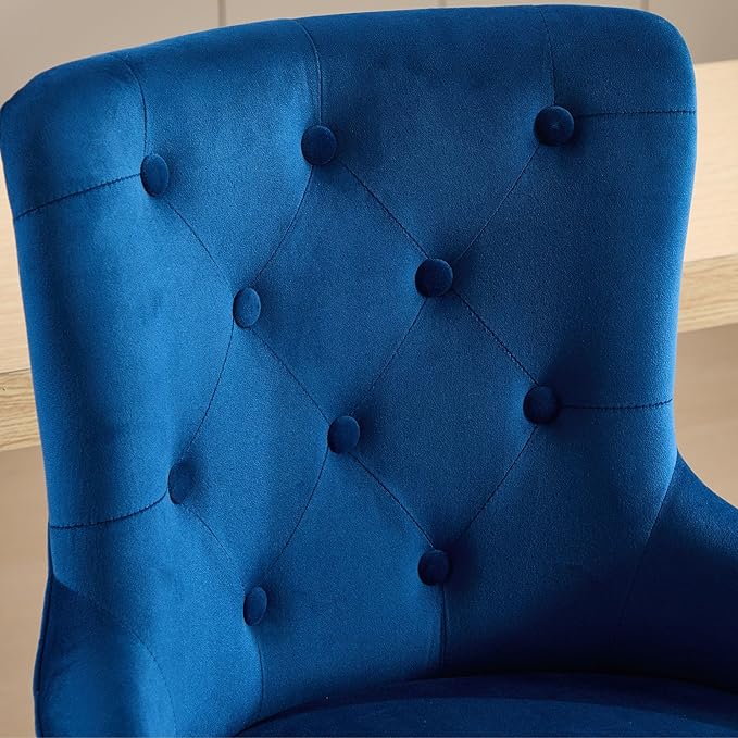 Velvet Lion Bar Stools Set of 6, Modern Height Adjustable Swivel Barstools with Chrome Base, Tufted Counter Height Bar Stools Upholstered Bar Chairs for Kitchen Island, Dining Room, Blue