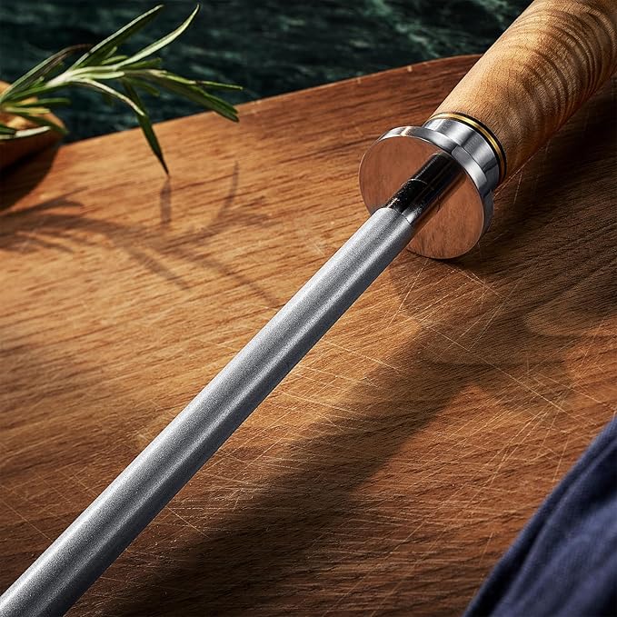• 🔪 【 Natural Sycamore Wood Handles 】 Each Dynasty knife has a beautiful Sycamore Wood Handle that is uniquely curved for a stronger grip as well as an enhanced aesthetic. The handles are smooth to the touch but also extremely durable with a suitable weight to them.