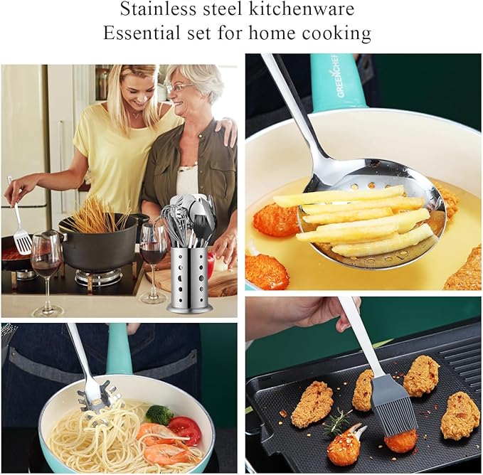 • 3. The included utensil holder keeps your kitchen organized and clutter-free. It not only adds a touch of style but also ensures that your utensils are always within reach when you need them.