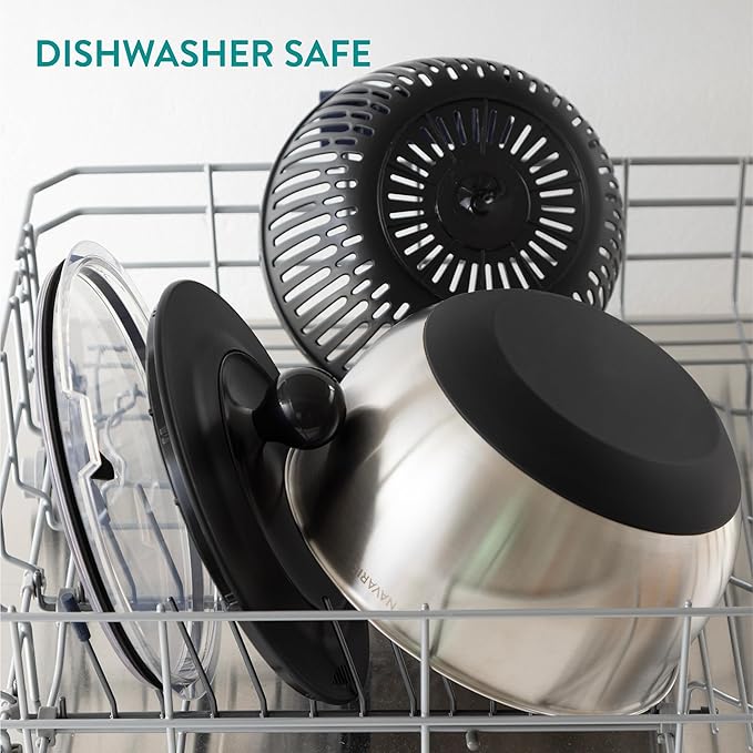 • Premium Quality Material: This salad bowl spinner with lid features a durable 304 stainless steel bowl, ensuring ensuring that your veggies stay fresh and your spinner stays in top shape for years to come.