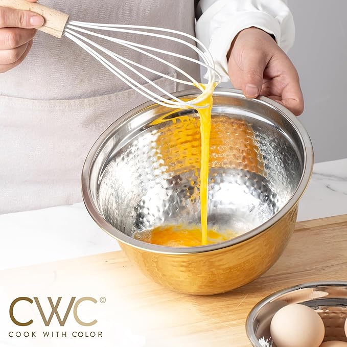 COOK WITH COLOR 18 Piece Mixing Bowls Set with Airtight Lids, Stainless Steel Bowl Organizers, Food Storage Containers, Meal Prep, Nesting Salad Bowls For Cooking, Baking, Kitchen, Gold - Hammered
