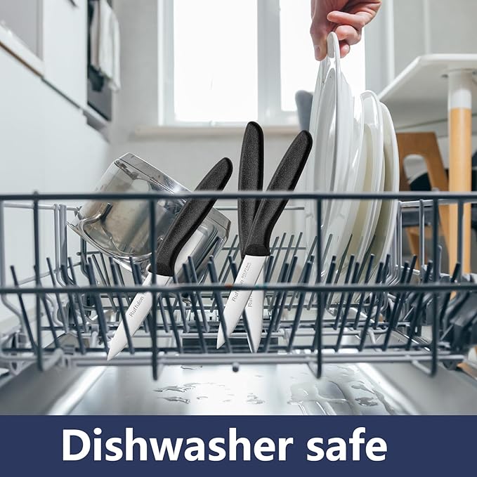 • 【Dishwasher Safe】-All knives are dishwasher safe, saving you time and effort. Enjoy the convenience of these small kitchen knives, excellent stainless steel material, also guarantees the quality of the blades.