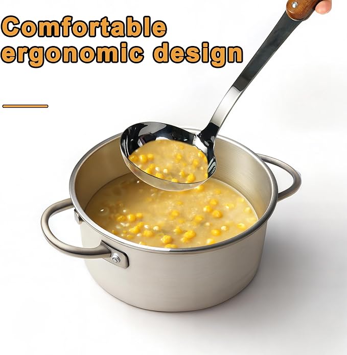 • Solid Kitchen Utensils: Wooden handle combined with polished mirror 304 stainless steel,combines sturdiness and aesthetics, the production process is more complicated, but it's worth it