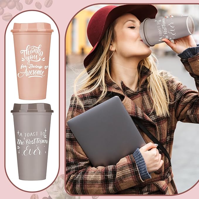 Pickmesh 15 Pcs Employee Appreciation Gifts Christmas Thank You Gift for Team Building 16 oz Teacher Plastic Coffee Cup with Lid Inspirational Travel Tumbler for Coworker Staff Pastor (Varicolored)