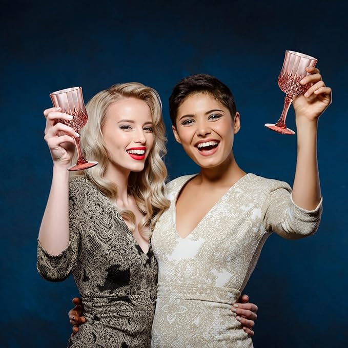 XUWAIDSGN 24 Pcs 7oz Plastic Vintage Wine Glasses Drinking Glasses Unbreakable Wedding Glassware Crystal Water Goblets Reusable Drinkware Vintage Champagne Flutes (24, Rose Gold)