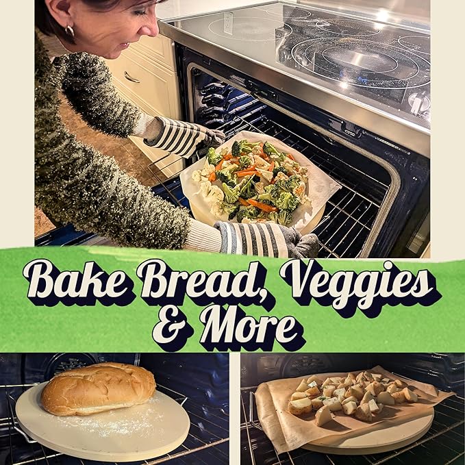 - EASY TO USE & VERSATILE: Beyond just pizza, our outdoor pizza oven stone offers endless possibilities. Use it as nonstick bread baking stone, biscuits, cookies, pastry, and more. Can use as a stone cookie sheet, bread stone, grill stone and more.