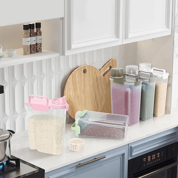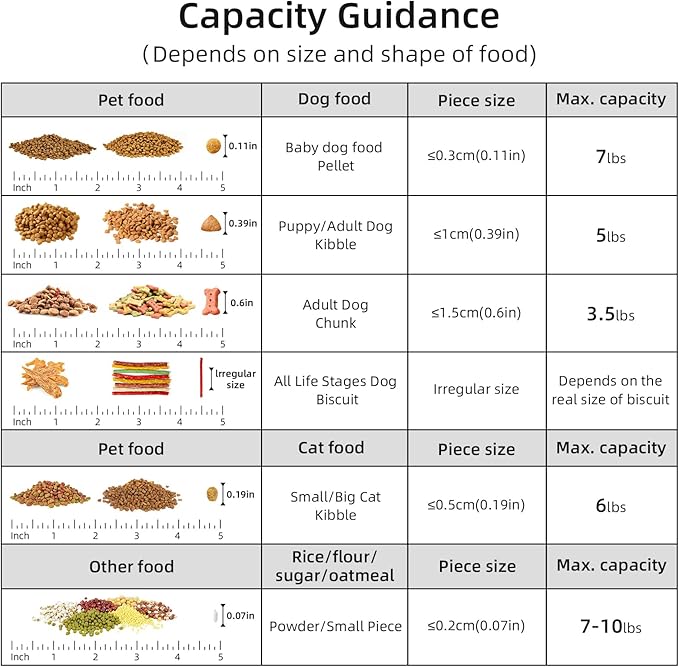 • MULTI-PURPOSE STORAGE : Our pet food container is suitable for storing dog food、cat food、bird seed、fish food、rice、 dry food、cereals、oats、flour and other large and small grains, as well as washing powder used at home. It is also a good choice.